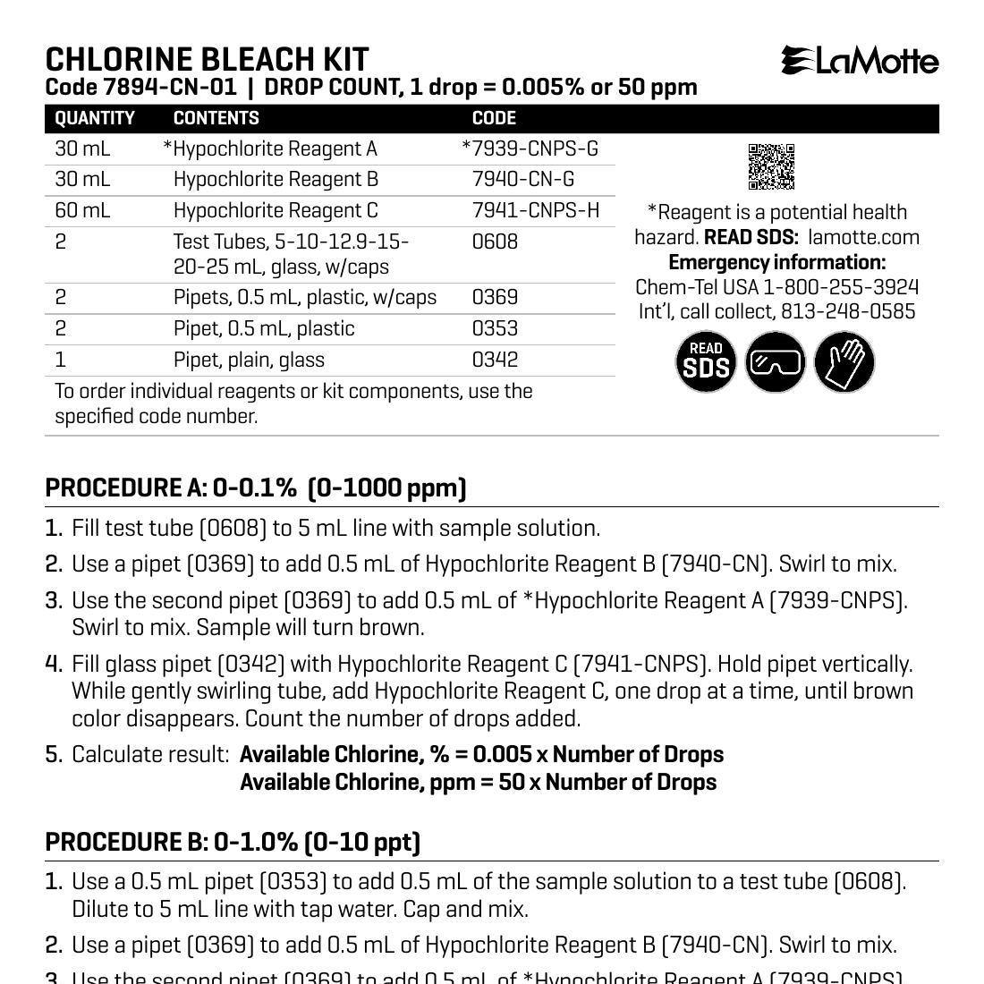 Chlorine Bleach Kit Drop Count Instruction Manual – Canadian Version (7894-CN-01)