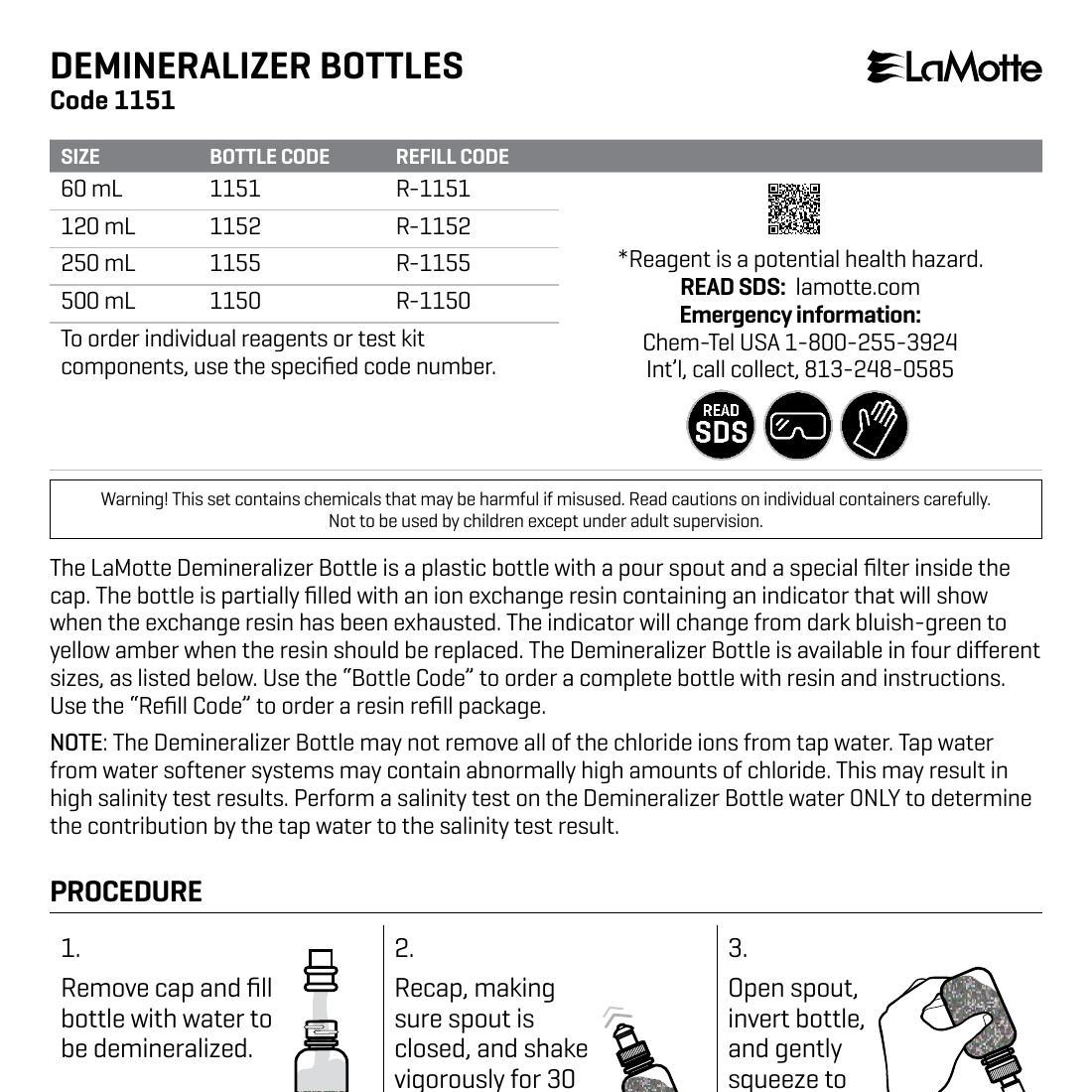 Demineralizer Bottles Instruction Manual (1151)