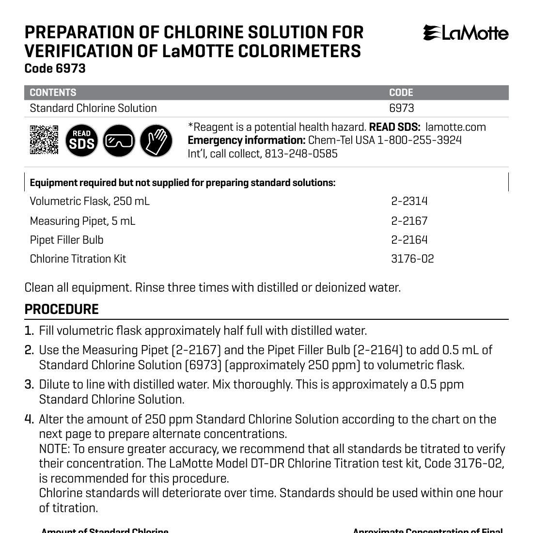 Preparation of Chlorine Solution for Verification of LaMotte Colorimeters (6973)