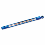 A precision, NON-MERCURY thermometer, furnished in a protective plastic jacket with a window opening. Engraved graduations on white tubing increase the readability over the full range of -5° to 45°C in 0.5° increments.