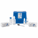 This kit tests for Total, Calcium and magnesium hardness by using the Dropper Bottle method. All results are as CaCO3. Range/sensitivity is 1 drop = 10 ppm or 1 gpg CaCO3.
