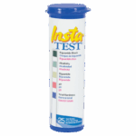 The test strip measures Biguanide (0-80 ppm), Biguanide Shock (0 to 360 ppm), Peroxide (0 to 100 ppm), Alkalinity (0-240 ppm), pH (6.2-9.0) and Total Hardness (0-800 ppm). The formula is designed for stable color development allows adequate time for the user to match very distinct colors along with preventing cross-contamination between pads. Each bottle includes 25 test strips packaged in a waterproof PopTop bottle with a molded desiccant liner, which protects the strips from moisture and UV light.