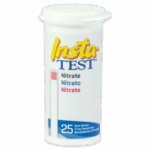 Measures Nitrate levels from 0, 10, 30, 60, 120, 200 ppm. The Nitrate test is a dip-n-read strip with results in 60 seconds. The bottle includes 25 strips packaged in a waterproof PopTop bottle with a tri-lingual (English, Spanish, French) instruction label. The PopTop bottle has a molded desiccant liner, which protects the strips from moisture and UV light.