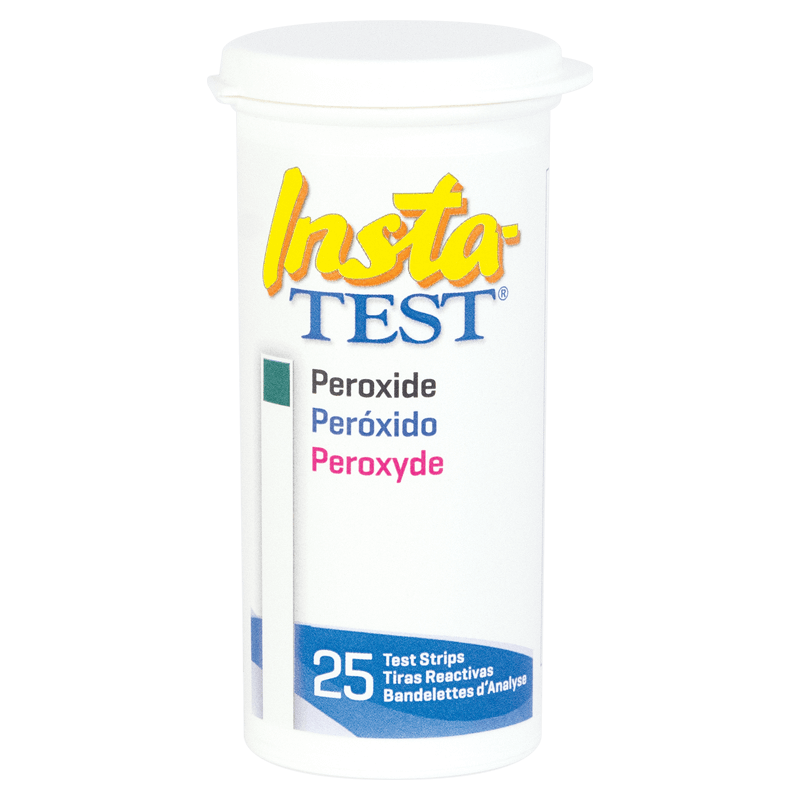 The Insta-TEST® Peroxide (Biguanide Shock) strip measures peroxide levels from 0 to 90 ppm. This test strip is a dip-n-read strip with results in 10 seconds. Each bottle includes 25 test strips packaged in a waterproof PopTop bottle with a hinged cap. The bottle has a molded desiccant liner, which protects the strips from moisture and UV light. The Insta-TEST® Peroxide strip is ideal for a quick test in your water.