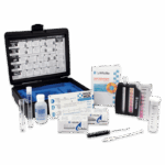 Includes 2 Octa-Slide color bars with 8 translucent color standards for Chlorine and pH. The POOL MGR. Tablet Series titrations for Alkalinity and Hardness, use a single tablet added to a test sample to develop a color. Sample water is added until an endpoint color change occurs. Results are read directly from the vial in ppm. The Cyanuric Acid test tablets are available in the 3368 POOL MGR. Series kits. A cloudy precipitate develops and results are measured by the disappearing dot method. A 50-page reference manual for entry level lifeguards and service personnel is included with information on water balance, sanitizers, dosage charts and testing. The POOL MGR. series also includes diagrammed instructions and saturation index calculator in a tough, blow-molded carrying case.