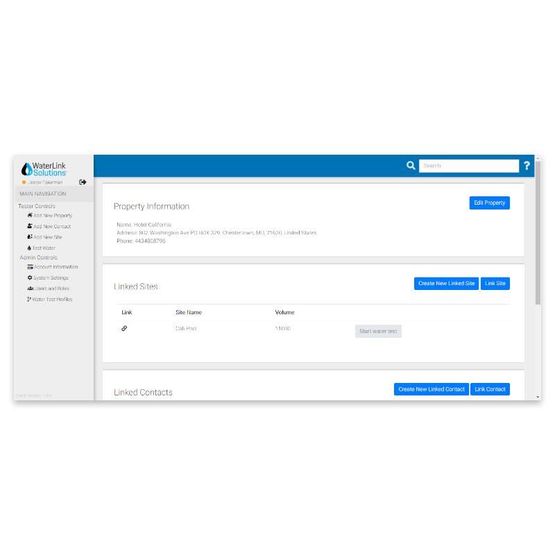 Tested water is considered a Site. Sites are typically located at a physical address — a Property. Individuals that need to be notified when a water test is completed are Contacts. WaterLink® Solutions PRO lets you manage each of these entities separately or link them together to build relationships between them. Use as much or as little as you need to get the job done.